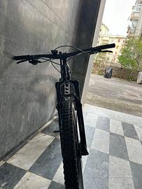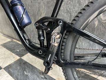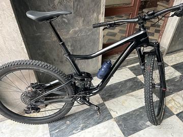 Mtb giant trance full, taglia L, telaio in carbonio, doppio set di gomme pirelli. ruote 29, monocorona dodici velocità, SRAM X01 Eagle AXS, freni SRAM G2 RSC, reggisella telescopico RockShox Reverb Stealth AXS, escursione anteriore di 130 millimetri affidati ad una massiccia FOX 36 e posteriore da 115 mm,