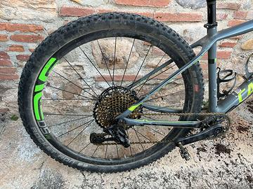 Montata tutta xx1 con pacco pignoni sram 12 velocita 10-50 gold corona 34 , freni Level ult, ruote in carbonio, reggisella telescopico.