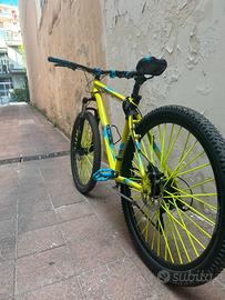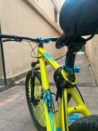 mtb con attaco manubrio blu,pedali blu, reggisella blu, manopole blu, copri raggi fluo rimuovibbile