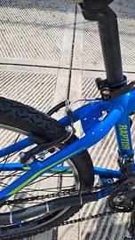 Vendo bici misura 24 NSR Raptor azzurra. Telaio in alluminio, freni a pattini nuovi, forcella ammortizzata, cambio Shimano Tourney, catena nuova, copertoni Michelin nuovi.