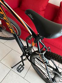 Bicicletta mountainbike MTB misura 27.5". Ha un telaio in acciaio e ha una forcella ammortizzata. Dotata di cambio Shimano TZ500 21V e comandi cambio Sunrun 7x3. Ha un freno a disco meccanico anteriore e un freno V-brake posteriore in alluminio, che esercita una potenza notevole e funziona anche in presenza di acqua e fango. I cerchi sono in alluminio. Misura telaio 46 cm, misura imballo 181x18x113 cm. Nuovissima . Prezzo trattabile ritiro di persona no spedizione.