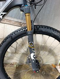 Vendo MTB OLYMPIA IRON accessoriata TOP, misura S, telaio in carbonio, Ruote 29 FRM canale 30, cambio SRAM XX1 11 velocità, freni XT, forcella FOX KASHIMA con blocco su tre posizioni al manubrio, leggerissima sotto i dieci kg, copertoni come nuovi, normali segni d'usura ma perfettamente funzionante