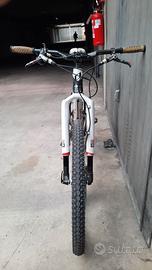 Vendo per inutilizzo splendida mtb olympia nitro taglia M in carbonio: sella,reggisella manubrio pipetta ritchey wcs carbon,forcella rock shox rs1 da 100 steli rovesciati, ruote mavic slr da 27.5, cambio sram xx1 pignone posteriore da 11/42 eagle,corona anteriore da 34 doval,freni a disco sram xx... peso 8,3 kg... che dire presenta qualche piccolo segno di normale utilizzo,mai gare,usata giusto per qualche passeggiata domenicale.