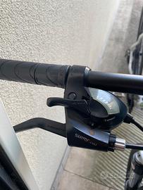 Bici MTB bianca con decorazioni verdi. Cerchi d 29. Freni a disco. Cambio anteriore a tre marce e cambio posteriore ad otto marce. In ottime condizioni