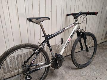vendo splendida bici MTB r26 BLECK RAIN a 170€ la bici ha telaio in alluminio forcella anteriore ammortizzata cambi Shimano Acerra 24 marce gomme come nuove freni nuovi la bici e come dalla foto e pronta all'uso da subito per info 3899832986