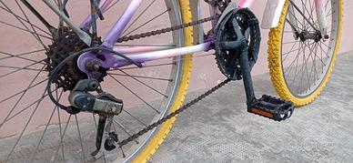 Bicicletta Mountain bike Regal, con ruote da 24 pollici da ragazzina, telaio in acciaio, con cambio Shimano a 18 velocità e portapacchi posteriore. Bici in buone condizioni, pronta all' uso. Eventualmente trasporto a domicilio fino ad un max di 25 km da Sassuolo o Casalgrande (trasporto 15 euro)