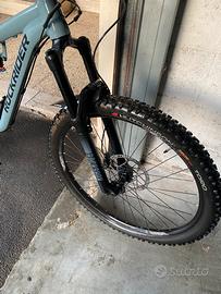 Bici come nuova con 500 km. Forcella ROCKSHOX 35 GOLD escurzione: 150mm.,ammortizzatore MANITOU MCLEOD AIR. 140 mm 190 x51 mm. ,ruote da 29 larghezza interna 26mm. Copertoni anteriore HUTCHINSON TORO x 2,35” posteriore TAIPAN x2.25” latticizati. Pedali Rockraidr con attacco da un lato. Disco anderiore da 205mm. Reggisella telescopico con escursione da120mm. Cassetta SRAM Eagle 12 rapporti 11-50, deragliatore 12 velocità, Trasmissione NX mono corona da 30 denti. Telaio: alluminio 6061 e 6013 , telaio Switch And Ride compatibile anche con ruote da 27.5”. Freni SRAM LEVEL T con 4 pistoni davanti e 2 dietro. Taglia S . Per tutte le altre specifiche andare sul sito Decathlon.