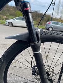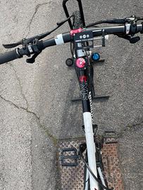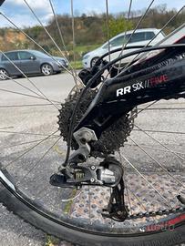 vendo mtb biammortizzata rockrider rr six.five taglia telaio M dimensioni ruota 26 michelin cambio Sram xs freni a disco anteriori/posteriori doppia corona, 3 marce davanti e 9 dietro forcella davanti sostituita (nuova) 120mm ammortizzatore posteriore rr 120mm sella selleitalia pedali sostituiti parafango fox anteriore e posteriore