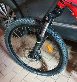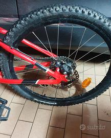 Bici MTB Rockrider ST900 24 pollici, per bambini 9-12 anni, statura da 135 a 150 cm, telaio interamente in alluminio, forcella ammortizzata, freni anteriore e posteriore a disco, trasmissione monocorona 36 denti con cambio a 8 rapporti 11-34 denti, cerchi a sgancio rapido, campanello, luci e catarifrangenti ruote. Peso 12.3 Kg. Perfette condizioni generali, penumatici come nuovi, prezzo non trattabile, solo ritiro a mano.