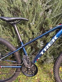 Il telaio in alluminio Trek garantisce leggerezza e solidità, mentre la forcella ammortizzata anteriore assorbe bene le asperità del terreno. I freni a disco anteriori e posteriori assicurano una frenata efficace in ogni condizione. Il cambio a più rapporti è fluido e preciso, ideale sia in pianura che in salita. I pneumatici tassellati offrono una buona aderenza su diversi tipi di terreno.