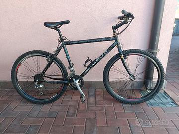 Vendo causa inutilizzo bici Schwinn Paramount con componentistica Shimano quali deragliatori deore Lx, pacco 7 rapporti posteriore Shimano, pacco corona 3 rapporti Shimano sg, mozzo Shimano,pattini freno Shimano m55/t ,kit leve freno e cambio Shimano con leve in alluminio, coperture cavi Shimano e pedali in acciaio.