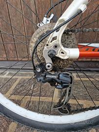 La bici ha cambio shimano deore (3/9 marce), bloccaggio ammortizzatori anteriori e freni a disco idraulici, ruote 26" Vendo a 350 trattabili