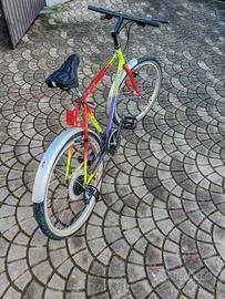 Bicicletta MTB in buono stato , di qualità superior Olimpia Leopard cerchi e gomme in buonissimo stato, completo di coprisella nuovo, cavalletta, cambio posteriore Shimano 200 GS a 8 rapporti, cambio anteriore Shimano a 3 rapporti, parafanghi anteriori e posteriori.