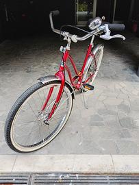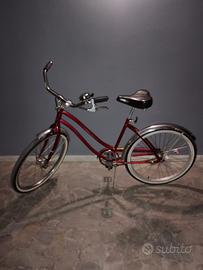 Bici tipo cruiser, con ruote da 26'', freno posteriore a contropedale e anteriore al mozzo.