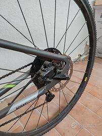 Vendo bici muscolare ibrida leggera fantastica per ogni utilizzo. Usata pochissimo per via di un impedimento fisico. Cerchi Mavic freni a disco idraulici anteriore e posteriore, forcella pneumatica bloccabile da manubrio, fantastico cambio Sram MX. Telaio completamente in alluminio leggero super resistente. introvabile non più in vendita nei magazzini Decathlon, valore completo all'acquisto oltre 900 euro. Se interessati chiamare dopo le ore 18:00. Solo ritiro a mano.