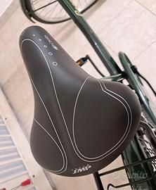 Bicicletta nuova, acquistata in aprile 2025, tipo olandesina marca Casadei, colore verde, inutilizzata. Sella comoda, aggiunta di cestino metallico anteriore; presenta portapacchi posteriore, luci a led (anche ad intermittenza) e cavalletto laterale.