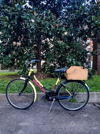 Bici Olandesina personalizzata con una cassetta di legno sul portapacchi, molto comoda ma facilmente removibile. Usata con amore. Freni e copertoni cambiati due anni fa e da allora a riposo in cantina. Necessita comunque di una veloce revisione!
