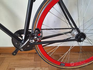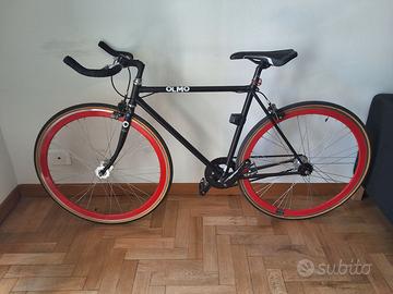Vendi bici Olmo Fixie nera. Misura M, sella Selle Italia, pedali Urban, manubrio custom e leve dei freni Saccon. Ruota posteriore con doppio pignone (fisso / ruota libera). Regalo manubrio originale Ergotec con manopole e leve dei freni Logan. Vendo per scarso utilizzo, bici sempre stata al chiuso e perfettamente funzionante. Minimi graffi dovuti all'utilizzo esclusivamente sul triangolo posteriore.
