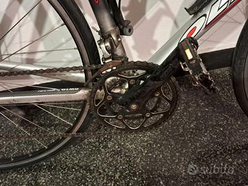 Vendo Bici Olmo taglia media 55. Manubrio e forcella anteriore in carbonio. Guarniture: 50-34; cambi 26-13. In regalo ruota di scorta con copertone per rulli come in foto.