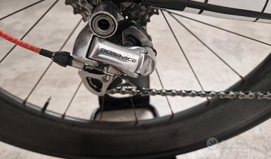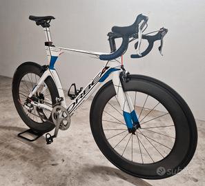 Vendo bici corsa Orbea Aero assemblata, telaio full carbon taglia 57 (L), montata tutta completamente Dura-Ace meccanico 10 velocità, ruote alto profilo in carbonio con tubolari, cuscinetti ceramici, bici molto performante sul piano, usata pochissimo. Solo ritiro di persona.