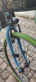 Vendo bici da passeggio, bella e particolare, verniciatura a polvere, gomme BRT verdi particolari e camera d'aria anti foratura, cestino e porta pacchi con luci led, tachimetro e specchietto, la bici e completa e super scorrevole. Bellissima , consegna a mano. Pavia.