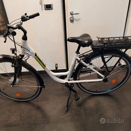 Vendo bici a pedalata assistita Bianchi PUCH GOING, usata pochissimo, ruota 28", unisex . Comandi e cambio Shimano 8v Alivio - pignoni 8v 11/32T - freni V-Brake in alluminio. Motore 250W, posizionato nel mozzo anteriore, 3 livelli di assistenza. Batteria Li-ion 37V 10Ah. Autonomia 50 km (in modalità 1, temperatura d'esercizio 20° , peso ciclista 70kg). Peso 24 kg con batteria.