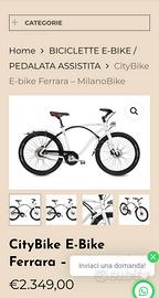 vendo questa bici adatta a uomini e anche donne a pedalata assistita di qualità e design praticamente nuova,si tratta del modello Ferrara del brand Milano Bike dotata di motore Zehus con il sistema KINETIC ENERGY RECOVERY,ovvero quella funzione che permette di ricaricare la batteria pedalando all'indietro durante la corsa,il prezzo di listino superava i 2000 euro, la mia richiesta è di 650 euro