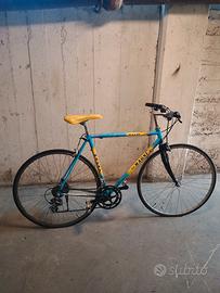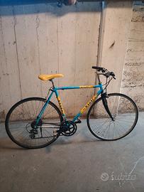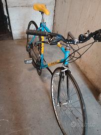 bicicletta pep magni in acciaio con forcella in carbonio,ex bici da corsa trasformata con manubrio da passeggio, cavalletto. 8x2 velocità orizz.54 vert. 51