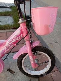 Vendo bici per bambina dai 3 anni ai 7 anni, in ottimo stato come nuova, con rotelle e cestino porta oggetti, ruote da 12.
