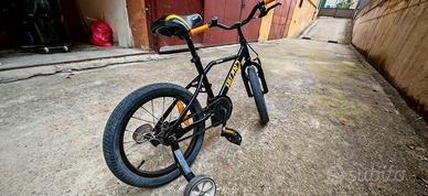 Bici per bambini con freni a pedali. Usata però tenuta in buone condizioni con visibili segni di usura (come da foto). Dotata di rotelle. Ideale per bambini di 3-6 anni.