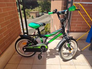 Vendo bici per bambino Carinelli Speedy 14 nera e verde usata pochissimo tenuta sempre in casa, perfetta come nuova completa di campanello cavalletto laterale e rotelle (non in foto), parafanghi e freni sia anteriore che posteriore nonché catarifrangenti ant./post. Ritiro a carico dell'acquirente su Roma zona S. Pietro o Pisana; non spedisco. No perditempo contatto o su subito o via whatsapp