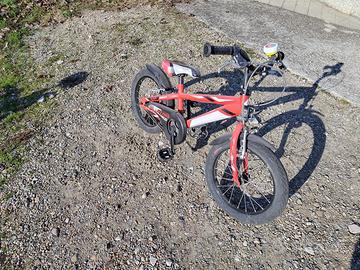 Bici di colore nero e rosso con ruote da 16 pollici. Adatta a bimbi da circa 4 anni in poi. Usata un paio d'anni, in perfette condizioni, praticamente come nuova.