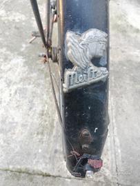 Bici di produzione tedesca probabilmente della Germania Est. Presenta segni di ruggine. Perfettamente funzionante freno a bacchetta e contro pedale x freno posteriore.Unico elemento rotto lo stop posteriore.