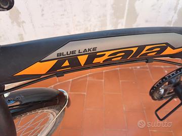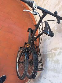 Vendo bici pieghevole Atala Blue Lake: telaio compatto in alluminio da 20 pollici con cerniera centrale. facile da trasportare e riporre, cambio Shimano a 6 velocità, freni V-brake in alluminio e colorazione nero/arancio. Completa di accessori non di serie (campanello, luce anteriore e cavalletto).