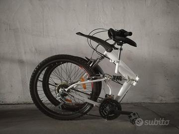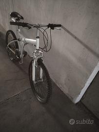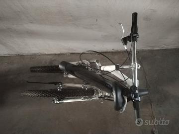 Bici pieghevole usata pochissimo, può essere facilmente ripiegata su se stessa per ridurre le dimensioni e facilitarne il trasporto. Ha 3 cambi davanti e 6 dietro Telaio 56 cm Ruota 59 cm 156 cm lunghezza totale Dimensioni da chiusa: 91 cm X 59 cm Comodo cavaletto Modello unisex In ottime condizioni, usata pochissimo, ha solo un difetto sulla sella.