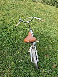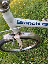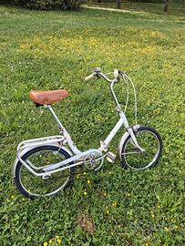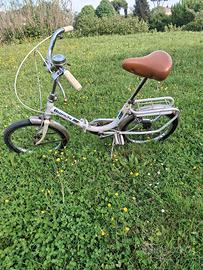 Bicicletta pieghevole vintage di marca Bianchi, modello Graziella. Design iconico: Progettata originariamente negli anni '60, è famosa per il suo telaio pieghevole che ne facilita il trasporto e il rimessaggio. Ruote 18x1,75 Oltre ai Pneumatici in foto anche 2 bianco neri Perfettamente funzionante Pezzo da Collezione