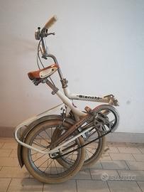 BICICLETTA PIEGHEVOLE MARCA "BIANCHI " USATA. BICI TIPO "GRAZIELLA" LA BICI E' DEGLI ANNI '60 TUTTE LE PARTI (SELLA, MANOPOLE, CARTER, ecc.) SONO ORIGINALI E MARCATE "BIANCHI"