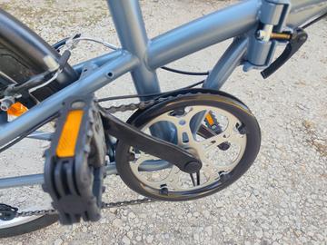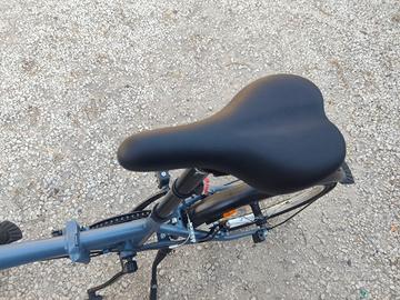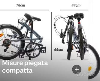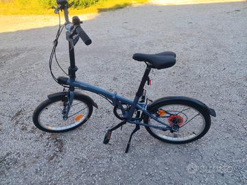 ritiro a mano zona divino amore NO SPEDIZIONE NO SCAMBI PAGAMENTO CASH AL RITIRO VENDO come regalo non gradito, nuova di zecca, mai usata. 220 euro (nuova 299) poco trattabile. Telaio in acciaio Hi-Ten. Il sistema di chiusura laterale riduce l'ingombro della bici: in casa, in ufficio, nel bagagliaio dell’auto, in camper... ci si dimentica di averla! Per migliorare la stabilità della bici chiusa, sotto al fodero orizzontale il telaio è provvisto di un poggiabici. Forcella Forcella in acciaio Hi-Ten per maggiore solidità. Trasmissione Provvista di cambio 6 velocità, la Oxylane 120 si adatta alla maggior parte dei dislivelli. Il cambio di velocità è molto semplice grazie all'impugnatura girevole. Corona 52 denti, ruota libera Shimano 6 velocità TZ20 14/28. Sviluppi in metri per un giro di pedali: - sviluppo più piccolo: 2,96 m per giro di pedali, 28 denti. - Sviluppo più grande: 5,90 m per giro di pedali, 14 denti. Freni Freni V-brake in acciaio per una frenata efficace e progressiva. Manubrio / attacco manubrio / sterzo Manubrio semi-rialzato in acciaio, con rise di 60 mm per adattarsi alla morfologia dell'utilizzatore e migliorare la manovrabilità della bici. Larghezza del manubrio: 560 mm. Attacco manubrio pieghevole, non regolabile, in alluminio, per avere maggiore rigidità. Distanza sella - manubrio: 540 mm. Distanza movimento centrale-sella: minimo 520mm - massimo 740mm. Sella / reggisella Sella confortevole in schiuma, senza cuciture, e reggisella in acciaio con diametro 20 pollici, cerchioni parete singola, mozzo in acciaio. Il sistema di blocco delle ruote facilita la manipolazione della bici chiusa e lo stoccaggio. Copertoni Copertoni da città gumwall 20x1,75. Abbiamo sviluppato questi copertoni per ottenere il miglior rapporto rendimento/aderenza.