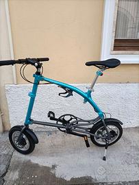 Bici in alluminio e acciaio con 3 rapporti, freni a disco. Estremamente pratica e confortevole. Ottima da tenere in macchina-camper-barca, ripegata occupa spazi irrisori. Praticamente è nuova. Vendo per inutilizzo in quanto vivo fuori regione. Il modello è Ossby curvè.