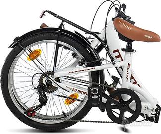 I freni V-Brake in alluminio garantiscono una frenata efficace e immediata, e sono facili da regolare anche con piccoli attrezzi. Il sistema di piegatura è semplice e rapido: manubrio, pedali e telaio si chiudono in pochi gesti, riducendo l’ingombro a circa 77 x 64 x 35 cm, rendendola perfetta per chi ha poco spazio o si muove spesso con mezzi pubblici.