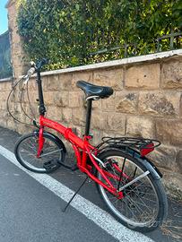 Vendo bici pieghevole in buon stato per la mobilita quotidiana e la facilità di raggiungere posti stretti, chiusura semplice e pratico. Composto da: 6 marce, parafanghi, cavalletto, portapacchi posteriore, campanello e catarifrangente anteriore e posteriore. Zona: Quartiere statuario verso ippodromo di Capannelle