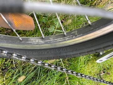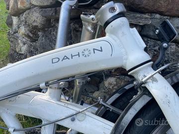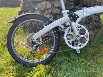 Bici pieghevole bianca con ruote da 20”, pratica e comoda da trasportare. Ideale per città, camper o barca perché si chiude facilmente e occupa poco spazio. La bici è in ottime condizioni e perfettamente funzionante. La Dahon Mu è una bicicletta sportiva perfetta per i suoi usi pratici in ambiente urbano. Il meccanismo di ripiegamento soddisfa i più alti standard di qualità. Grazie alla sua leggerezza e alle sue dimensioni ridotte, la bicicletta può essere trasportata facilmente: tutte queste caratteristiche la rendono una compagna perfetta per il traffico urbano. Sedia aria biologic, comoda, regolabile. Ruote 20-1.95 (50-406) Cambi Sram Freni Avid