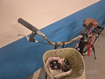 Ruote circa 20". Cestino anteriore capiente e portapacchi posteriore (comodo per borse/giornali).