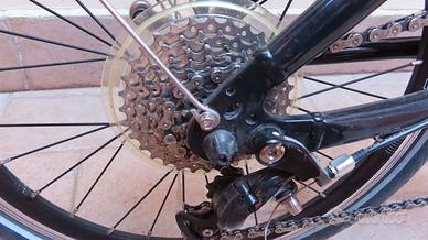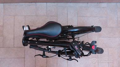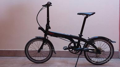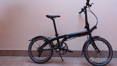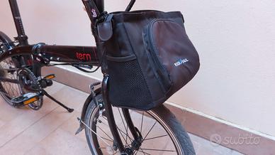 Vendo bellissima bicicletta pieghevole Tern Link P9. Perfetta da tenere in auto. Anno 2014 ma come nuova in quanto usata pochissimo; cambio a 9 marce, leggera, pneumatici antiforatura, colore nero/rosso, completa di parafanghi e campanello. Incluso raccordo ClickFix e borsa anteriore Rixen Kaul. Una volta ripiegata, il manubrio è tenuto fisso da una cinghia in gomma, mentre le ruote da una coppia di ganci magnetici. Misure da chiusa, senza la borsa: altezza 73 cm, lunghezza 83, larghezza 40. Solo in zona Verona, in quanto non spedisco.