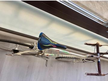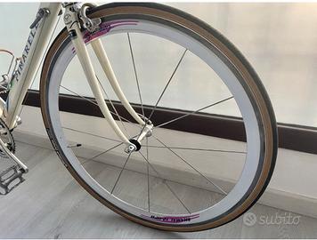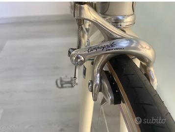 Bellissima bici vintage per eroica, componentistica completa vintage . Gruppo campagnolo record titanium 9v , pipa e manubrio 3m status, ruote profilo alto campagnolo shamal 12 Hpv. Fantastica Sella Pinarello Flita cucita a mano in pelle,kevlar e titanio . Completa di attacchi pesali . Usata pochissimo e conservata sempre in garage . Prezzo trattabile dopo visione.