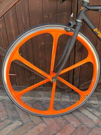 Ruota anteriore a razze arancione fluorescente