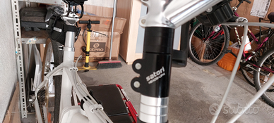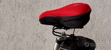 Bici mtb pininfarina bianca e rossa pieghevole, sella in gel con copertura antipioggia, sistema di ammortizzazione seduta variabile (in base al peso), rialzo manubrio per persone da 175 a 185 cm, borsa sottosella, pompa e campanello