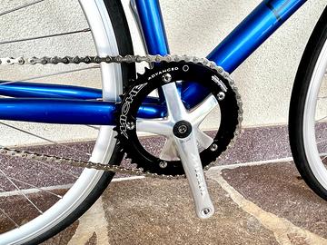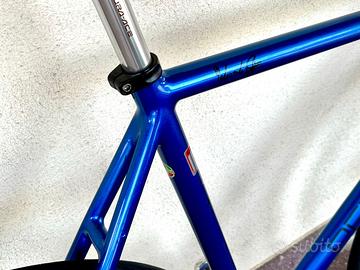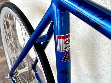 Qualche leggero graffio per il resto dritta e senza botte. Attacco manubrio Deda Pista (nuovo), ruote Novatec flip-flop (nuove), guarnitura Miche pista (nuova), reggisella Dura Ace Easton, sella Concor, piega Deda pista, serie sterzo Dura Ace. NO pedali.