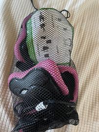 Ginocchiere para gomiti e paramani per bambini taglia S mai usati. Completi e nuovi sono indispensabili per bambine o bambini che stanno imparando ad andare in bici o su pattini e monopattini . Spedizione o consegna a mano zona Siena, Firenze, Monza. Ho anche il casco di colori rosso e celeste