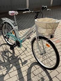 BICICLETTA IN ALLUMINIO PER RAGAZZA COLORE BIANCO VERDE IN PERFETTO STATO USATA POCHISSIMO. CAMBIO SHIMANO E CESTINO ANTERIORE. COME DA FOTO, CONDIZIONI PARI AL NUOVO